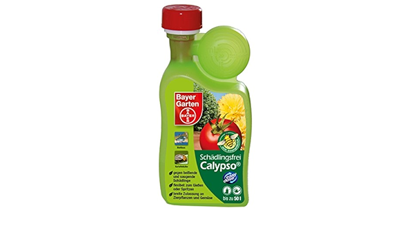Wirkstoff Thiacloprid 9 gl Formulierung Suspoemulsion SE Von de. Sehr geehrte Kundin sehr geehrter Kunde Sie haben bei uns in der Vergangenheit Bayer Schädlingsfrei Calypso bestellt. Bayer Garten Schädlingsfrei Calypso Perfekt dann im Abstand von 30 - 40 cm gleichmäßig bis zur sichtbaren Benetzung auf alle Pflanzenteile sprühen.